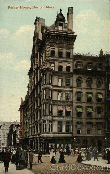 Front: HOA Parker House, Boston, Mass. -Դոստ հենի ******* II. **** 2/2463 C Back: Published by the Valentine & Sons' Publishing Co. New York and Boston. THROUGHOUT THE WORLD. & SONS CARD. FAMOUS