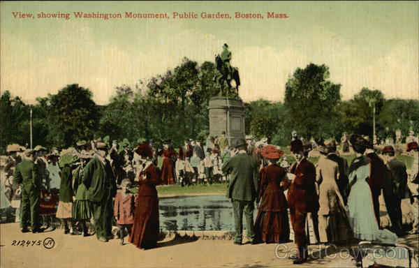 Front: View, showing Washington Monument, Public Garden, Boston, Mass. 212445 2 Back: The Leighton & Valentine Co., N.Y. City. THROUGHOUT TRADE MARK. &L QUALITY FAMOUS THE WORLD CARD