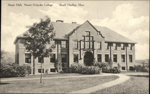 Front: Music Hall, Mount Holyoke College. South Hadley. Mass. GRIDLEY Back: THE SPACE POR MESSAGE. The Albortype Co., Brooklyn, N. Y. Post Cards of Quality. THIS SPAGE FOR ADDRESS. 7-
