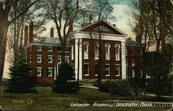 Front: 205,037 Leicester Academy, Leicester, Mass. Back: Published by Thomson & Thomson, Boston, Mass. 00. L. SOUVENIR POST GARD 3 3-