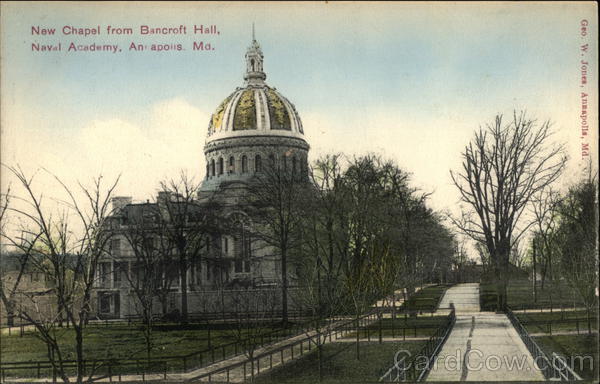Front: New Chapel from Bancroft Hall, Naval Academy, Anapois. Md. MART 000 20 Geo. W. Jones, Annapolis, Md. Back: UNITED ART PUBLISHING CO., NEW YORK CITY (PRINTED IN GERMANY.) 150 3964