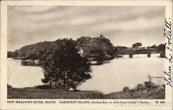 NEW MEADOWS RIVER, MAINE. OAKHURST ISLAND, Quahog Bay, as seen from Cundy's Harbor.