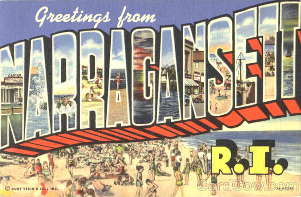 Front: Greetings from FASINO KAR.I. CURT TEICH & CO, INC. 78.H1534 Back: DISTRIBUTED BY NARRAGANSETT GIFT CENTRE, NARRAGANSETT, 8.1.