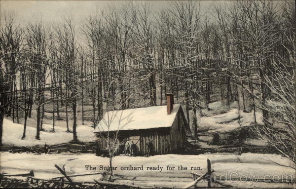 Front: The Sugar orchard ready for the run. VE Back: Published by Green Mountain Card Co., White River Junction Vt. 2. Making Maple Sugar Series. GMCCO POST CARD