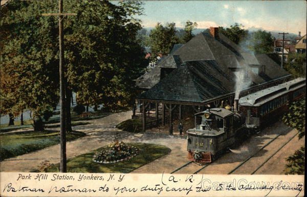 Front: 42 Park Hill Station, Yonkers, N. Y a. R. Batman patman do your duty carry this to the assining beauty Back: Illustrated Postal Card Co. New-York- Germany. 107.-9 Ms. Webster. Lafette Ave. Assining n.y. DOMESTIC AND Two CENTS