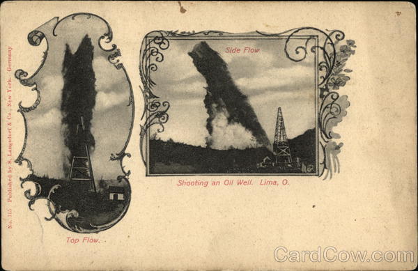 Front: Top Flow.. No. 315 Published by S. Langsdorf & Co., New York. Germany Shooting an Oil Well. Lima, O. 地寬9 Side Flow Back: Two cents