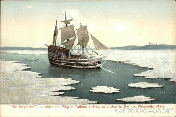 "The Mayflower", in which the Pilgrim Fathers arrived, at anchor in the ice, Plymouth, Mass.