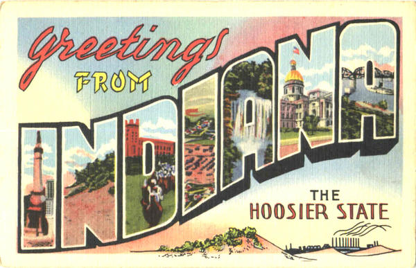Front: Grestings HOOSIER STATE Back: STAME 12 AT 699 ART TONE "GLO VAQ FINISHED MADE ONLY BY DEALS DES MOINES TOWA
