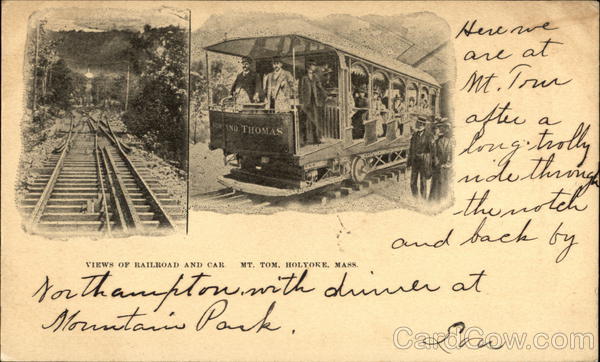 VIEWS OF RAILROAD AND CAR. MT. TOM, HOLYOKE, MASS.