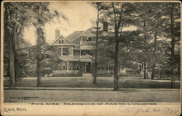 Front: LOUIS M.REGHIER PUBL. LENOX, MASS. ATA "PINE ACRE RESIDENCE OF MRS. WM. C. WHARTON. Jul 20.1908 Back: Miss J. 486 Ce 24 Domestic 1 Ct. Foreign 2 Cts. THE ALBERTYPE GO. BROOKLYN, N.Y.