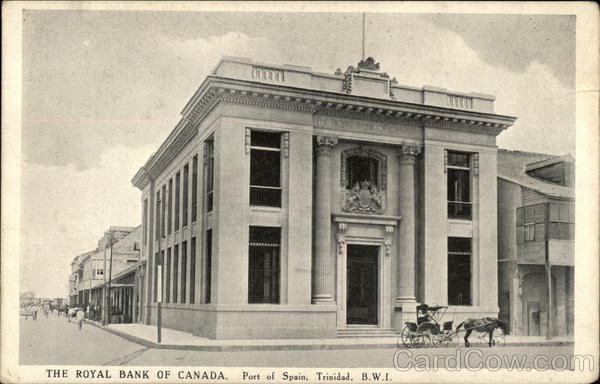 Front: 000001 THE ROYAL BANKOFCANK Port of Spain, Trinidad, B.W.I. THE ROYAL BANK OF CANADA. Back: POST: CARD WRITTEN BERE SAN BRE