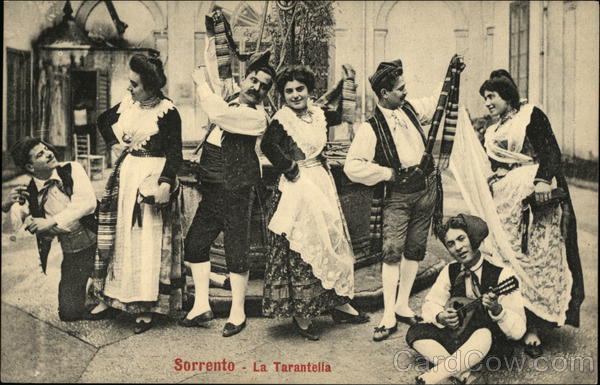 Front: Sorrento - La Tarantella Back: CARTOLINA POSTALE ITALIANA (CARTE POSTALE D'ITALIE.) Ediz. Frat, De Luca.