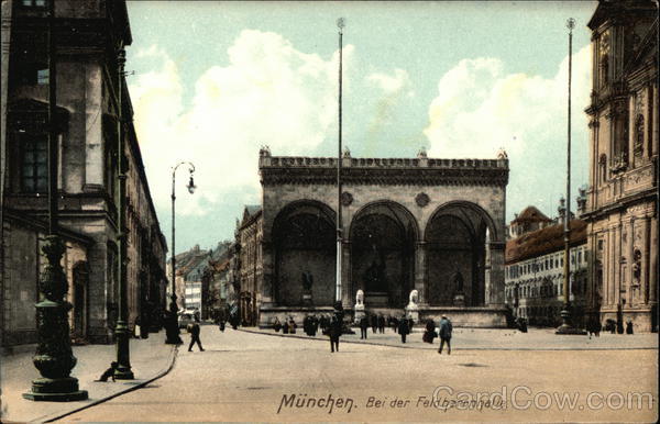 Front: München. Bei der Feldherrnhalle Back: Postkarte Carte Postale. Weltpostverein - Union postale universelle. Nur für die Adresse. Raum für Mitteilungen. HELIOCOLORKARTE VON C. TMAR ZIEHER, MÜNCHEN