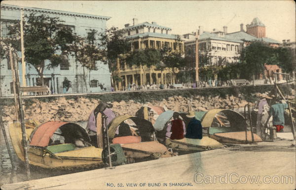 Front: NO. 52. VIEW OF BUND IN SHANGHAI. Back: CO TRADE A А MARK APAN Union Postale Universelle. 書合聯便郎國萬