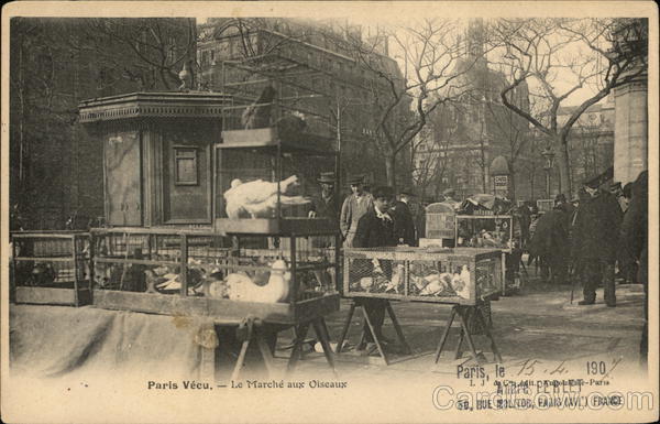 Front: BAN CAFES CARVALHO Paris, le 73 A, 190. Andre" PERLET- 60, RUE MOLITOR, PARIS (XVI) FRANCE Paris Vécu. -Le Marché aux Oiseaux L J' Cs it.DAnpoulene-Paris Back: IMPRIMÉ CP Mondance em Ballou william st. Ansonia (conn) Etats Unis d'Amerique