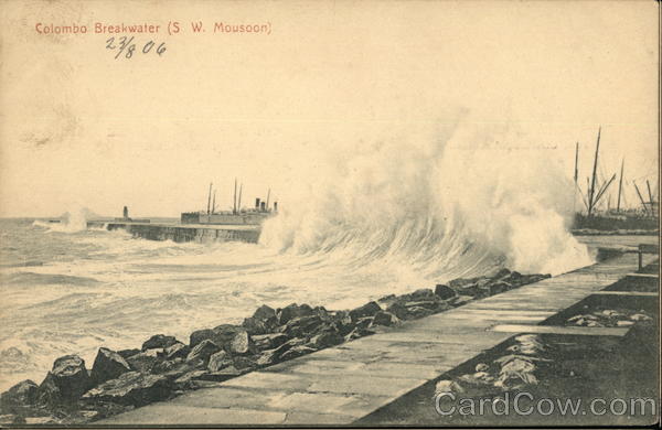 Front: Colombo Breakwater (S W. Mousoon) 23406 Back: SD 10 CEYLON (CEYLAN) THIS SPACE MAY BE USED FOR COMMUNICATION. Plâté & Co.