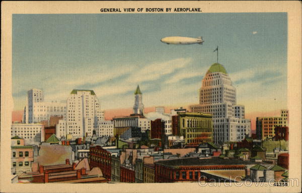 Front: GENERAL VIEW OF BOSTON BY AEROPLANE. EE 42255 Back: Published by United Art Co., Boston, Mass. IN 20