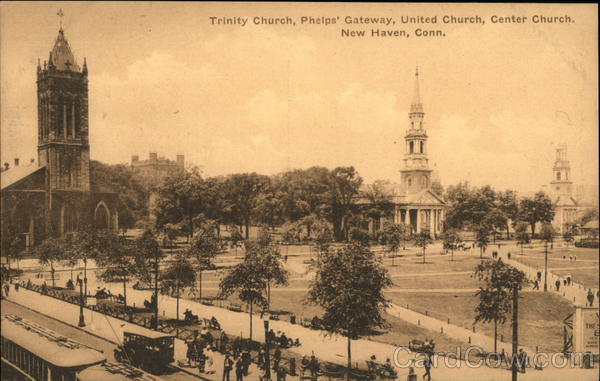 Front: Trinity Church, Phelps' Gateway, United Church, Center Church. New Haven, Conn. Www.X THE S WITH HAVE SVPPLY Back: Published by The Edward P. Judd Co., New Haven, Conn.