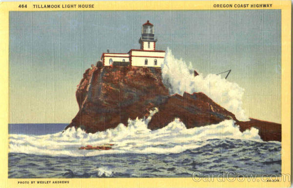 Front: 464 TILLAMOOK LIGHT HOUSE OREGON COAST HIGHWAY BA-H78 PHOTO BY WESLEY ANDREWS Back: "C.T. ART COLORTONE REG.U.S. PAT.OFF.- WESLEY ANDREWS CO.. PORTLAND, ORE.