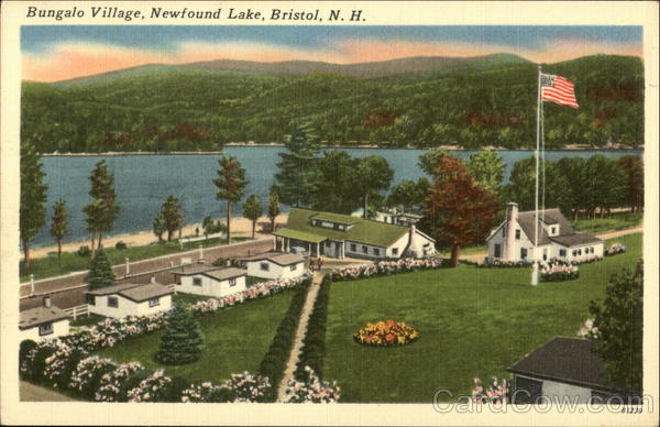 Front: Bungalo Village, Newfound Lake, Bristol, N. H. **** %24 81239 Back: "TICHNOR QUALITY VIEWS" REG. U. S. PAT. OFF. MADE ONLY BY TICHNOR BROS., INC., BOSTON, MASS.