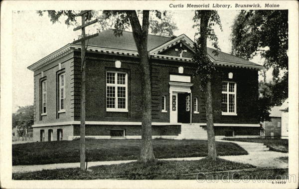 Front: Curtis Memorial Library, Brunswick, Maine A-14800 Back: GENUINE CURTEICH-CHICAGO "C.T: PHOTO-FINISHâ POST CARD--(REG. U.S. PAT. OFF.)