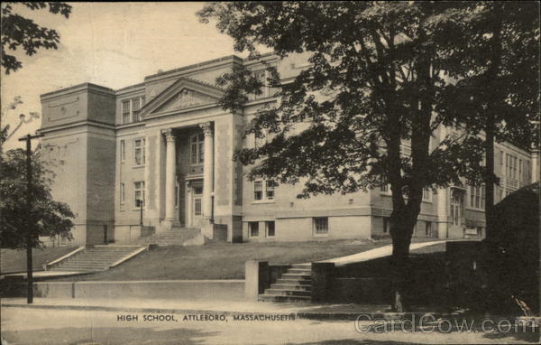 Front: HIGH SCHOOL, ATTLEBORO, MASSACHUSETTS Back: 10 1 EBORE UCTI! 6-PM MASS FREEDOM OF SPEECH AND RELIGION FROM WANT JRAND TEAR पर TU much 1 Thanks everne candt Hanky Hatte Graney for lovely is. to n. & Meikle Place Porth and