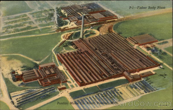 Front: P-1-Fisher Body Plant Pontiac Motor Co. Plant, Pontiac, Mich. 1B-H1087 Back: LUDINGTON NEWS CO., DETROIT, MICH.