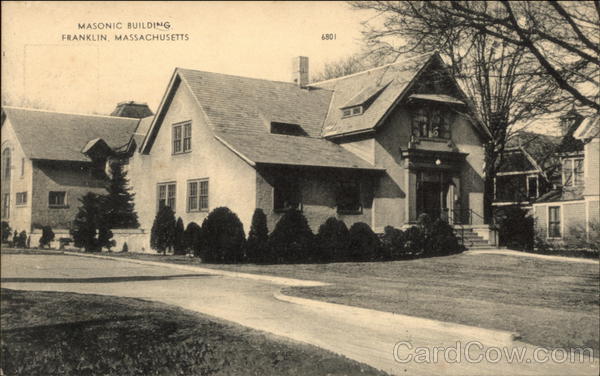 Front: MASONIC BUILDING FRANKLIN, MASSACHUSETTS 6801 Back: AMERICAN ART POSTCARD CO. BOSTON, MASS. AASS. PHOTOLUX 50