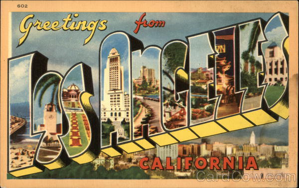 Front: 602 Greet ings from *** *** .. CALIFORNIA Back: MANUFACTURED BY LONGSHAW CARD CO. LOS ANGELES. CALIF. DE otac