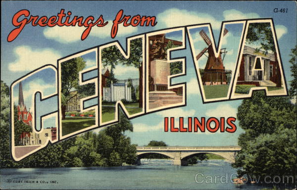 Front: G-461 Geeetings from ILLINOIS С сuRT TEICH & CO., INC. Back: AERO DISTRIBUTING CO., INC., CHICAGO, ILLINOIS SELECTED VIEWS OF GENEVA, ILLINOIS OC-H1773 m, wond سے 2سعه
