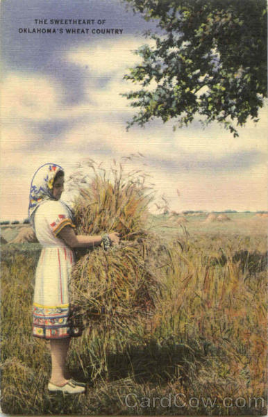 Front: THE SWEETHEART OF OKLAHOMA'S WHEAT COUNTRY Back: 15202 PUB. BY MID CONTINENT NEWS CO., OKLAHOMA CITY COLOUR PICTURE PUBLICATION. CAMBRIDGE, MASS., U. S. A. PHOTO BY ROY CHRISTIAN OKLAHOMA CITY CHAMBER OF COMMERCE