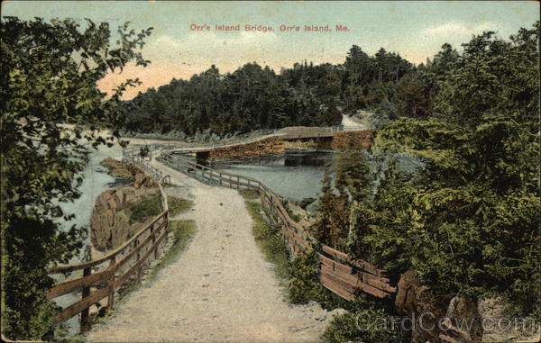 Front: Orr's Island Bridge, Orr's Island, Me. Back: Published by G. W. Morris, Portland, Maine. что For Message © JUL20 4-PM! 1910 Mice &. m. Prel Frog Dudley Sh Pronding برند Quand 70153