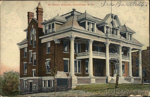 Front: St. Mary's Hospital, Clarksburg, W. Va. Ira Bartlett. @ T ST. MARY'S HOSPITAL Back: post Cerd memy Thanks for Ira Bartlett Lysech SL sebud E 10341 OMO PEREKO INITED ST IPAMIERIG 1706 FRANKLIN 1790 Dora Off Cargill 115 Sermmer St Franklin Mass