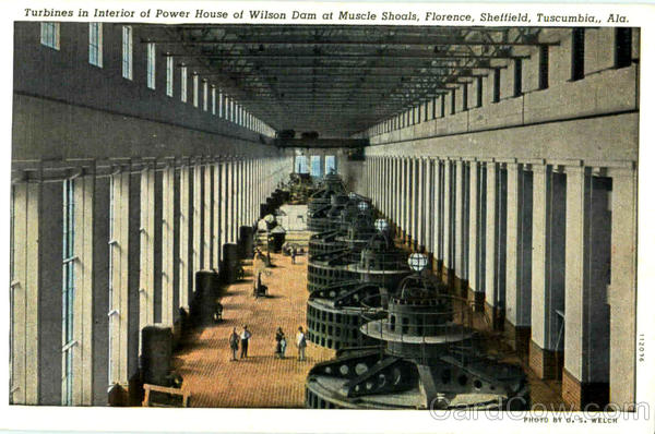 Turbines in Interior of Power House of Wilson Dam at Muscle Shoals, Florence, Sheffield, Tuscumbia,, Ala. PHOTO BY O. S. WELCH 112016