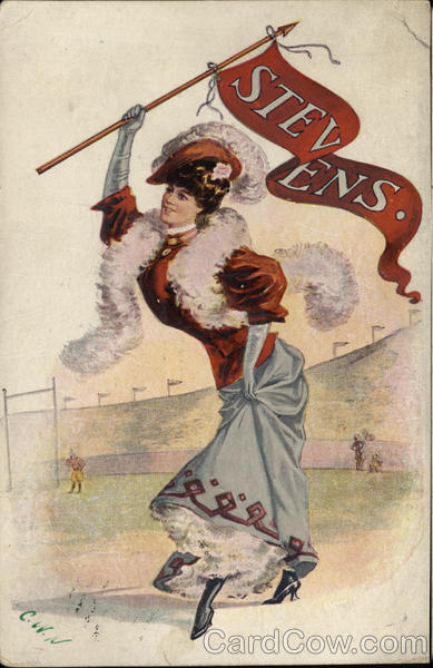 Front: C.W.N STEV ENS. V Back: POST GARD ACHOL HOBOKEN. N J. APR6 2 P NEERTEN 1902 UNITED STATES OF HEHE 1:06 FRANKLIN 1790 Chitwys wwwwww Miss Clura A. George 631 Palisads. Are Jersey City. N. Z