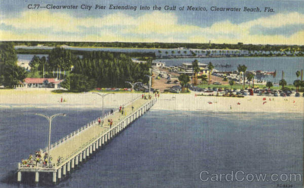 Front: C.77 Clearwater City Pier Extending into the Gulf of Mexico, Clearwater Beach, Fla. Back: SUN NEWS CO. ST. PETERSBURG, FLA. GENUINE CURTEICH-CHICAGO