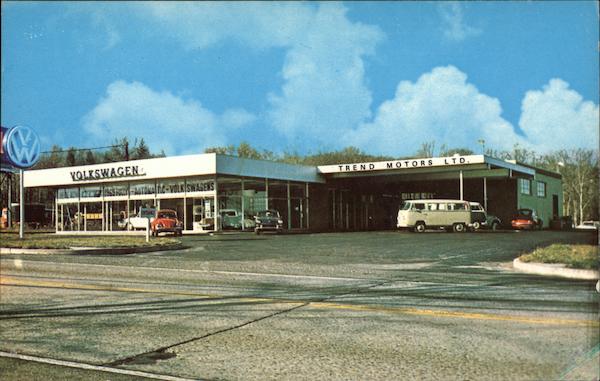 Front: VOLKSWAGEND. EW1969 FULLY-AUTOMATIC-VOLKSWAGENS TREND MOTORS SIT LTD. Back: BE TREND MOTORS, LTD. Authorized Volkswagen Sales, Service, Parts, Used Cars, Collision Repairs. Route 46, Rockaway, N. J. 07866 Tel. 625-0100 111842 HERE