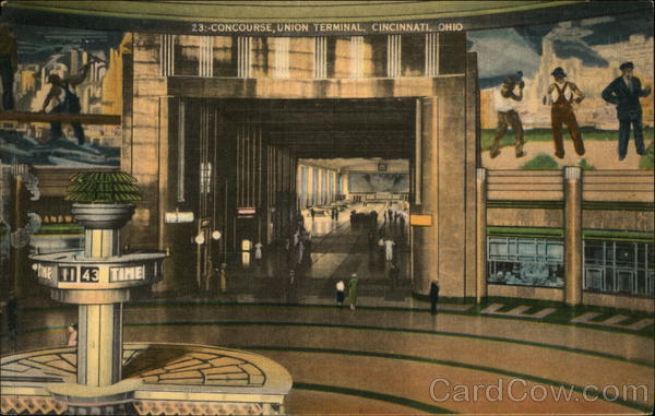 Front: 23:-CONCOURSE, UNION TERMINAL, CINCINNATI, OHIO ANDWS IME 43 TIME Back: Taeme Art Cincinnati PUB. BY KRAEMER ART COMPANY. CINCINNATI, OHIO 46896