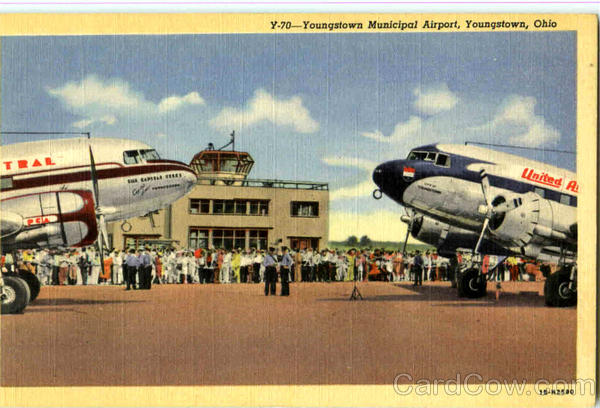 Front: Y-70-Youngstown Municipal Airport, Youngstown, Ohio TRAL United A PSA 18-H2590 Back: YOUNGSTOWN NEWS AGENCY, YGUNGSTOWN, OHIO