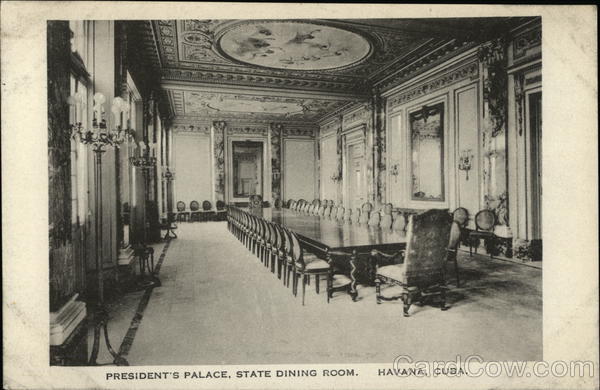 Front: HAVANA, CUBA. PRESIDENT'S PALACE, STATE DINING ROOM. Back: لا 928 American Photo Studios, Havana, Cuba.