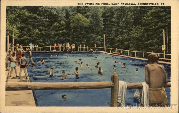 Front: THE SWIMMING POOL, CAMP NAWAKWA, ARENDTSVILLE, PA. Back: 1.00 93 MB Times & News Pbg. Co., Gettysburg, Pa. 9B-H524