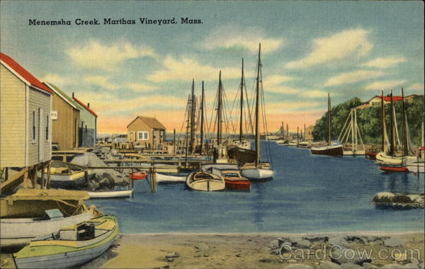 Front: Menemsha Creek, Marthas Vineyard, Mass. RS Back: MADE IN U. S. A TICHNOR QUALITY VIEWS" REG. U.S. PAT, OFF. MADE ONLY BY TICHNOR BROS., INC., BOSTON, MASS. 73192