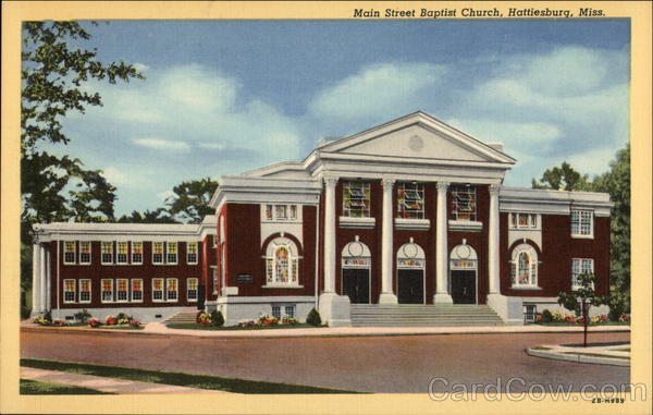 Front: Main Street Baptist Church, Hattiesburg, Miss. 2B-H989 Back: D. E. LEVINE NEWS AGENCY, HATTIESBURG, MISS.