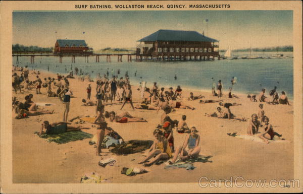 Front: SURF BATHING. WOLLASTON BEACH, QUINCY. MASSACHUSETTS 449 Back: Made by Eastern Photo Litho Co., Lowell, Mass. 1.oo