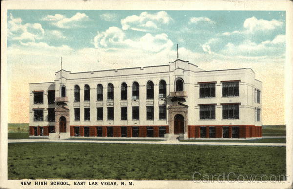 Front: NT 11 NEW HIGH SCHOOL, EAST LAS VEGAS, N. M. Back: 58846-PUBLISHED BY JONES, E. LAS VEGAS. COMMERCIALCHROME PLACE