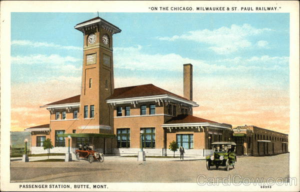 Front: 188 VA PASSENGER STATION, BUTTE, MONT. "ON THE CHICAGO, MILWAUKEE & ST. PAUL RAILWAY." [1 68998 Back: C. T. AMERICAN ART COLORED To CHI HERE