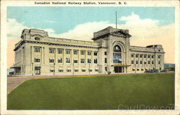 Front: Canadian National Railway Station, Vancouver, B. C. गि ១.១០. BAIL 18602 Back: The Valentine & Sons United Publishing Co Limited Toronto and Winnipeg THROUGHOUT THE WORLD. POSTAV SONS FAMOUS