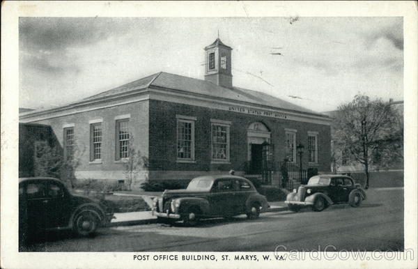 Front: 10 POST OFFICE BUILDING, ST. MARYS, W. VA. 21 Back: PUB. BY CENTRAL DRUG STORE, ST. MARYS, W. VA. ACLE 2017 Eagle Post Card View Co. New York I, N. Y. MADE IN USA 8-