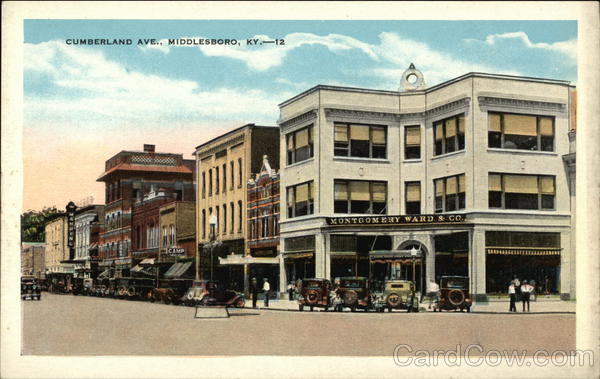 Front: CUMBERLAND AVE., MIDDLESBORO, KY.-12 LOIST ay m ***** MONTGOMERY WARD & CO., Back: MADE IN U.S.A. BY E. C. KROPP CO., MILWAUKEE 6327 N POST 4.00 TO ANYWHERE IN U.S. VIA AIRMAIL Co