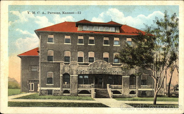 Front: Y. M. C. A., Parsons, Kansas-12 TE 10 RAILROAD AND CITY YOUNG MENS CHRISTIAN ASSOCIATION Back: E. C. KROPP CO., MILWAUKEE -٤ 24086N STAMP
